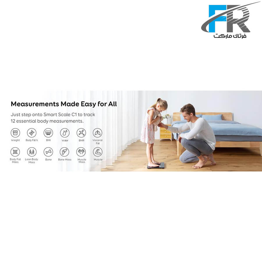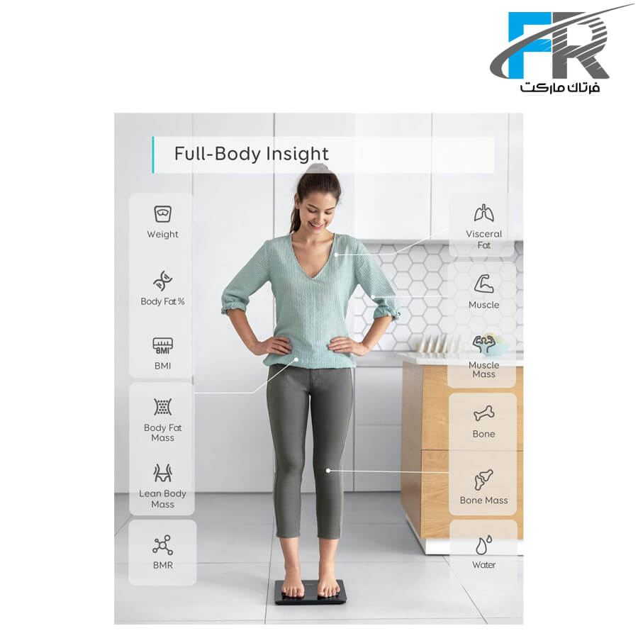 - 12 حالت تجزیه و تحلیل ترکیب بدن مانند وزن کامل بدن، BMI ،BMR, درصد چربی بدن، درصد آب، درصد عضله اسکلتی، وزن بدن بدون چربی، توده عضلانی، توده استخوانی، متابولیسم پایه، چربی زیر جلدی و چربی احشایی را می توان محاسبه و کنترل کرد.