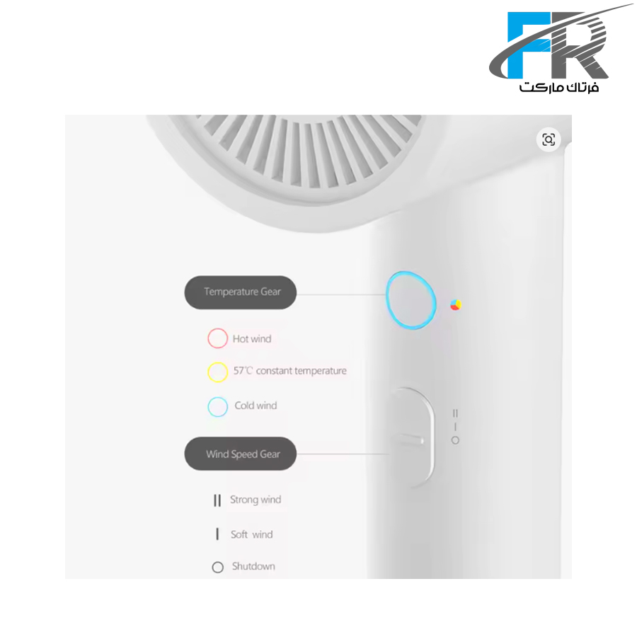 - دارای دکمه برای تغییر حالت هوای گرم و سرد