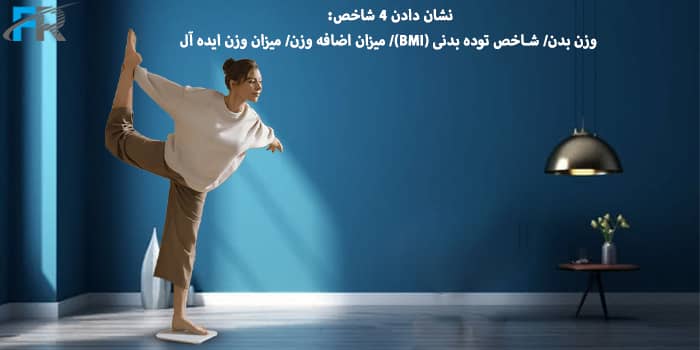 - نشان دادن 4 شاخص: وزن بدن، شاخص توده بدنی (BMI)، میزان اضافه وزن، میزان وزن ایده آل
