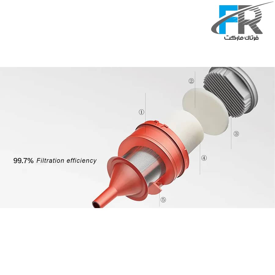 - دارای سیستم فیلتراسیون عمیق ۵ مرحلهای که ۹۹.۷٪ از ذرات گرد و غبار میکروسکوپی به کوچکی ۰.۱ میکرون را فیلتر میکند